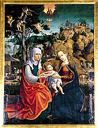 tabuľová maľba z roku 1513 predstavujúca Sv. Annu Samotretiu (Metercia). V pozadí